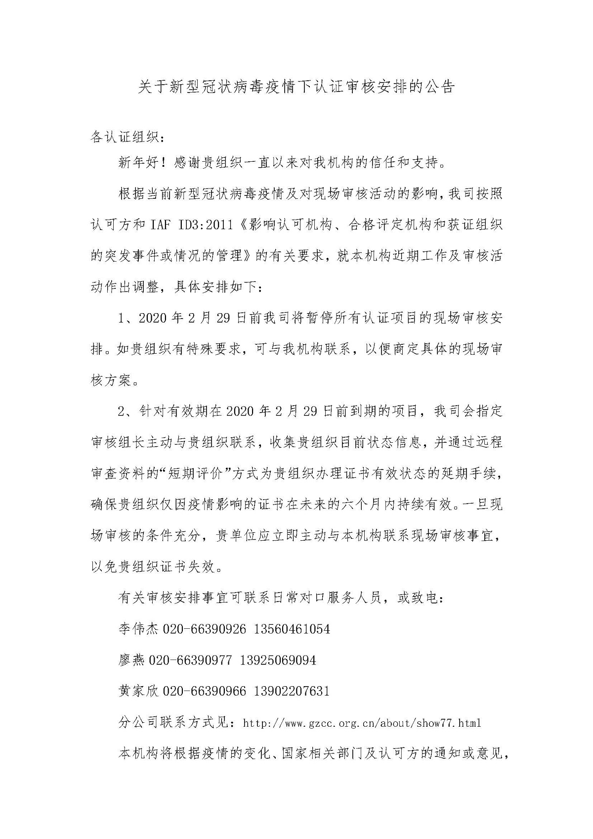 关于新型冠状病毒疫情下工作及审核安排的公告